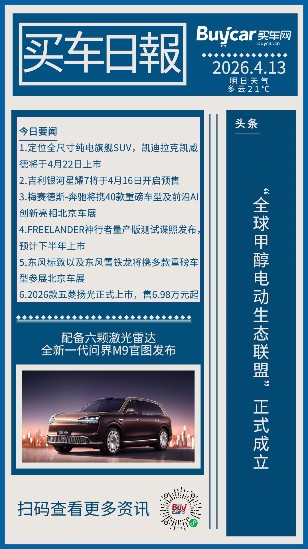 买车日报-20260413- “全球甲醇电动生态联盟”正式成立